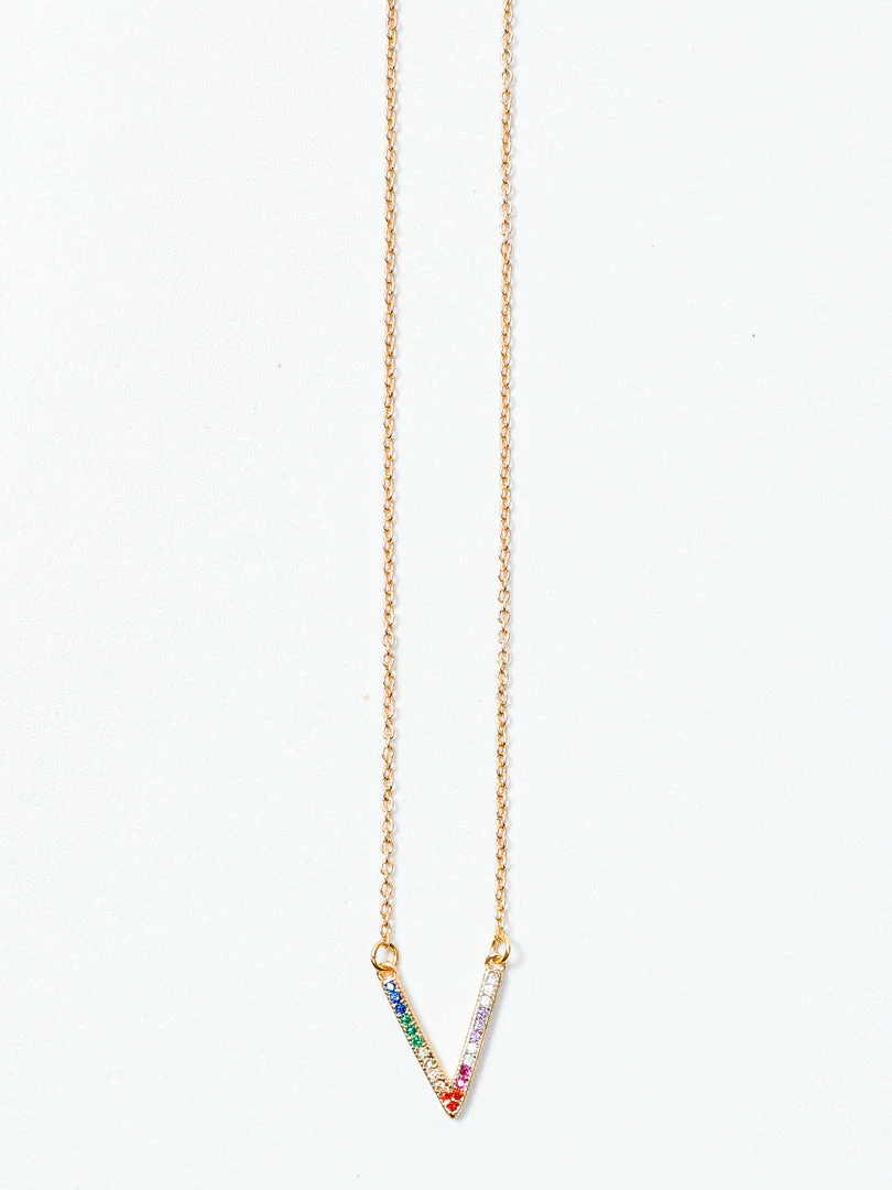 Looking to add a little color to your jewelry collection? Look no more! We love this cute deep v rainbow necklace and all the fun colors that it has! Wear it to include a pop of color to any outfit!