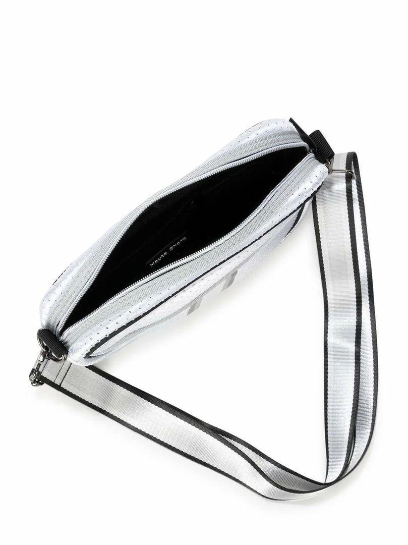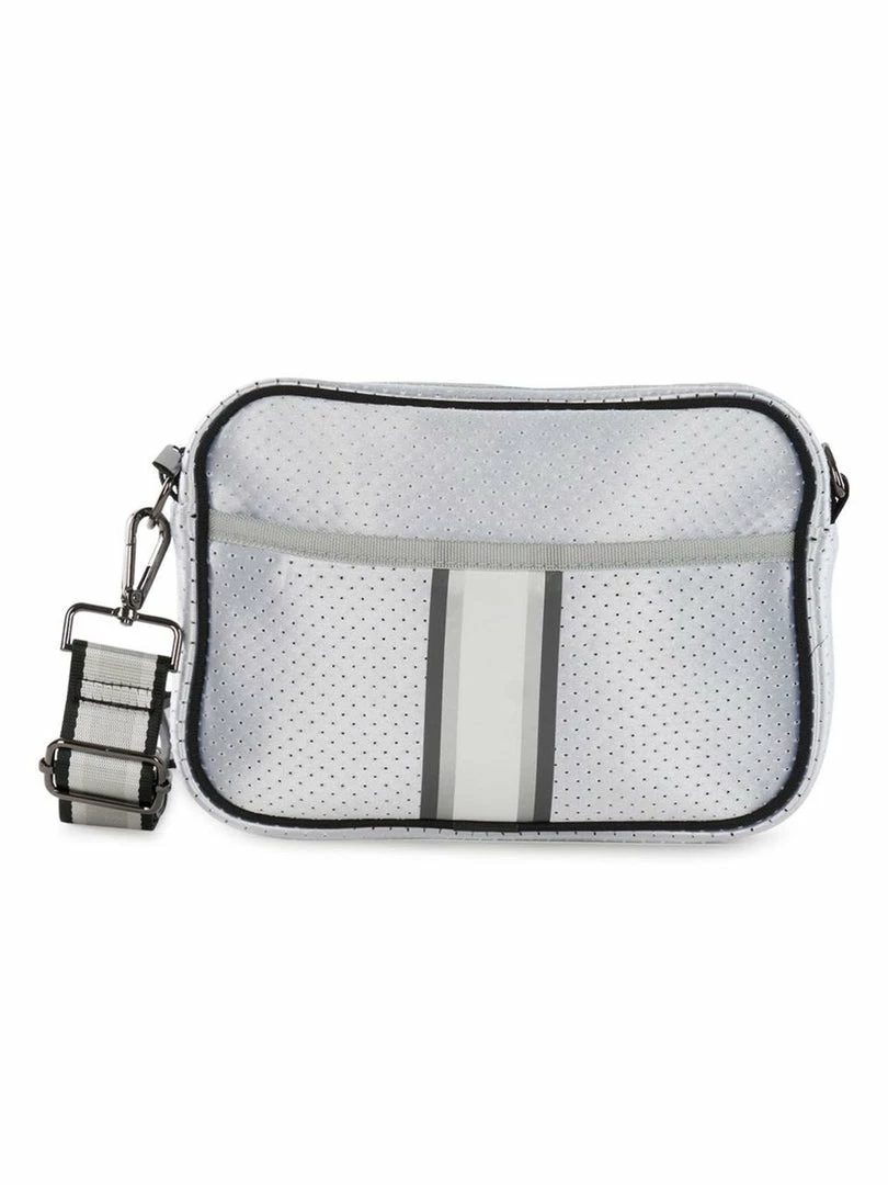 Neoprene compact crossbody bag with hidden front zipper compartment