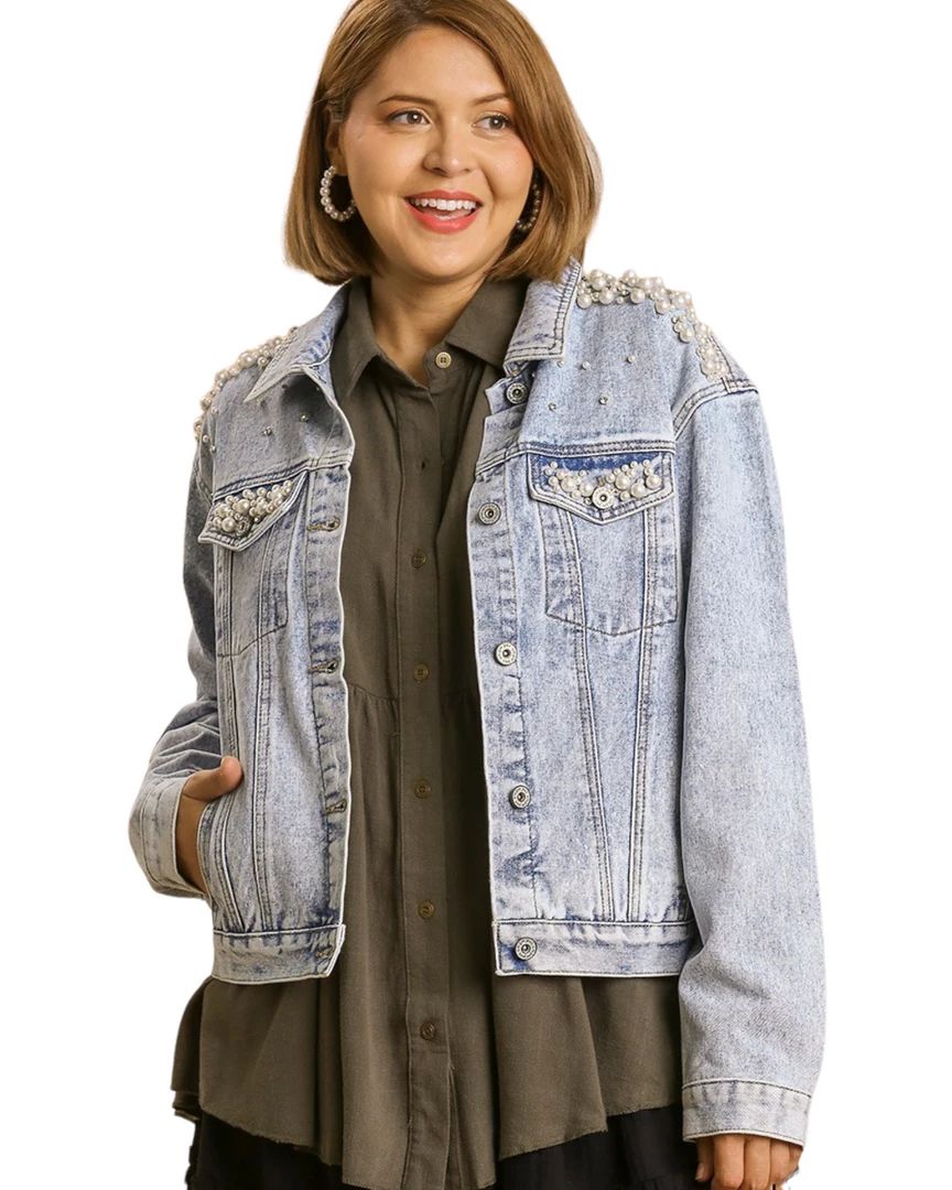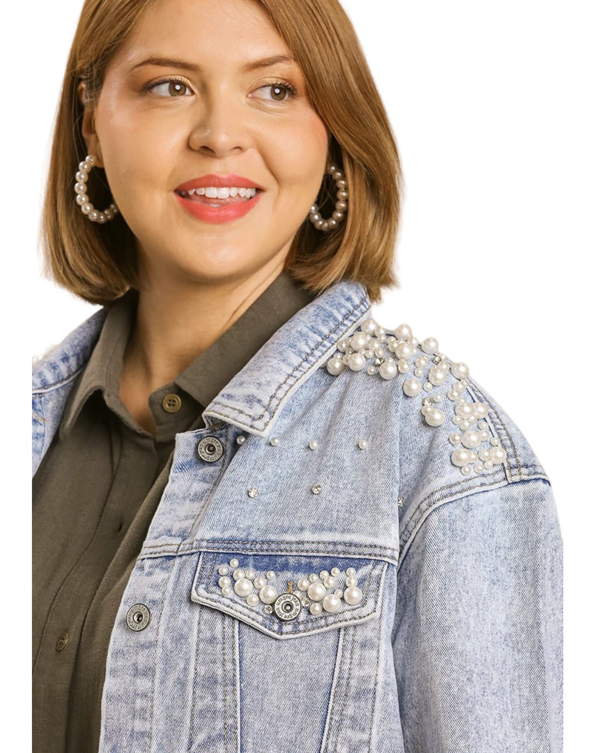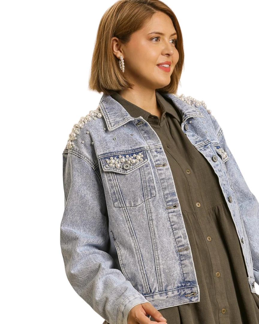 Top 10 ⌛ Apparel-Curvy Girl Curvy Just A Girl Pearl Denim Jacket ✨