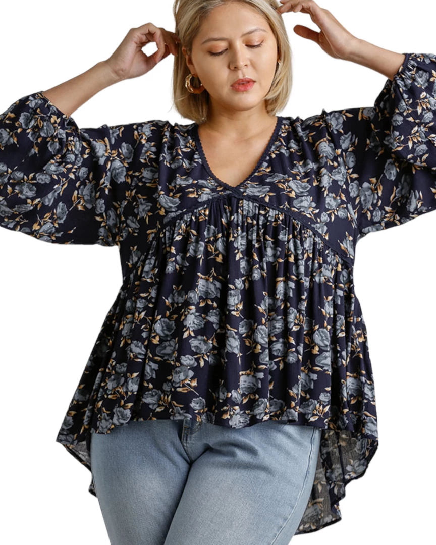 New 🔥 Apparel-Curvy Girl Curvy Think I Love You Floral Babydoll Top 😍