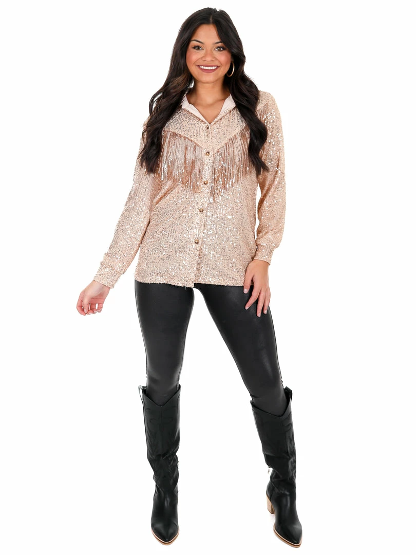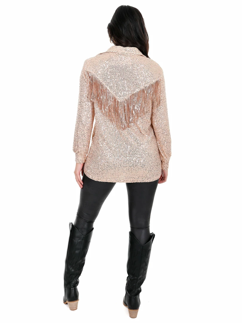 Promo ✨ Blue B Like A Cowgirl Sequin Fringe Top Tops ⭐