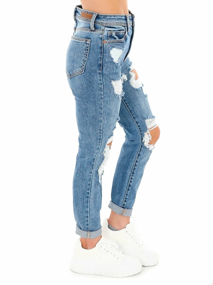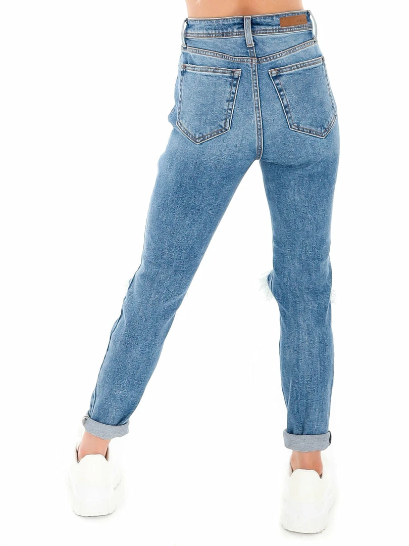 How cute are these new mom skinnys?! Featuring a high rise fit with distressed details, these jeans are a new favorite! Don’t wait to grab yours!