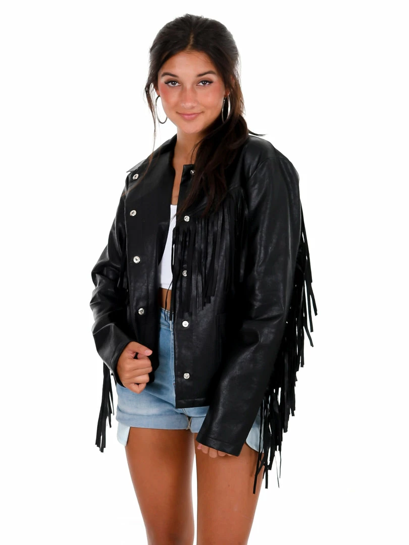 Deals ๐ Cloud Ten Outerwear Walk This Way Pleather Fringe Jacket ๐