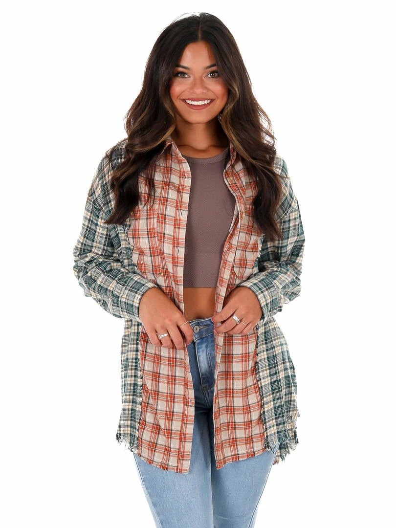 Best Pirce ๐งจ Crescent Patch It Up Rust Multi Plaid Button Up Top Tops โค๏ธ