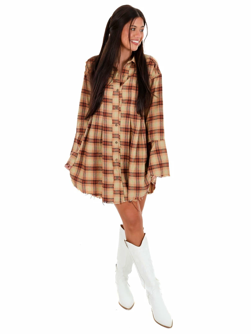 Coupon ❤️ Easel Southern Nights Camel Orange Plaid 👗 Dress 😉