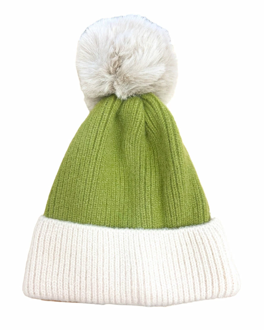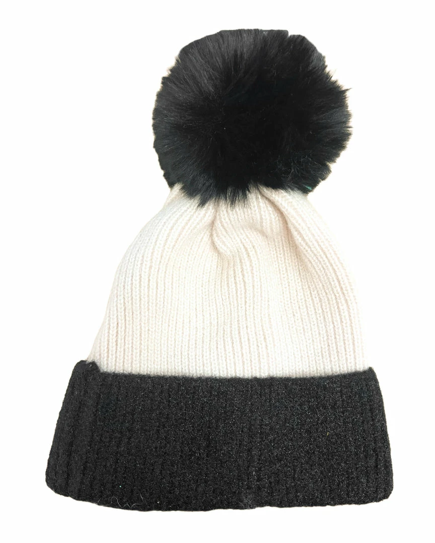 Budget ๐ Fame Accessories Hats Ribbed Two Tone Pom Beanie ๐