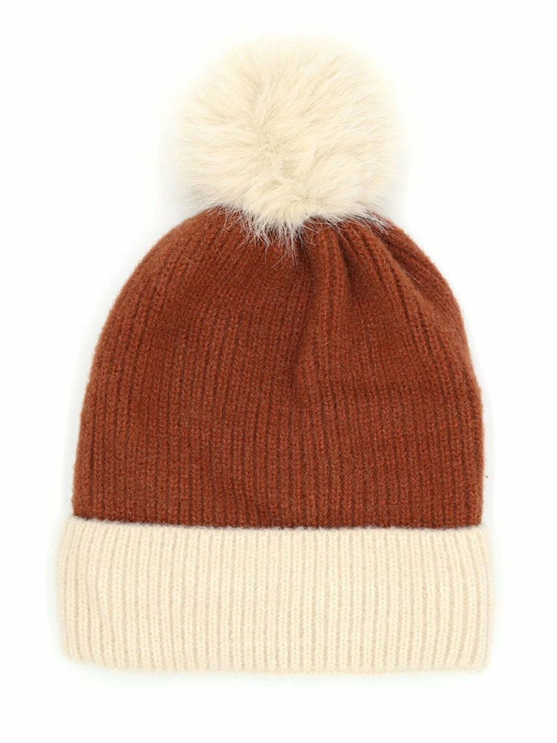 Coupon ๐ Fame Accessories Two Tone Knit Pom Pom Beanie ๐