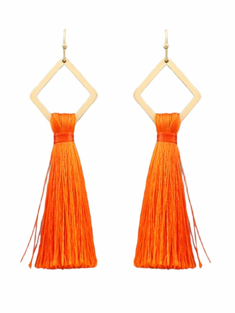 Wholesale ๐ Golden Stella Jewelry Rhombus And Orange Tassel Earrings ๐