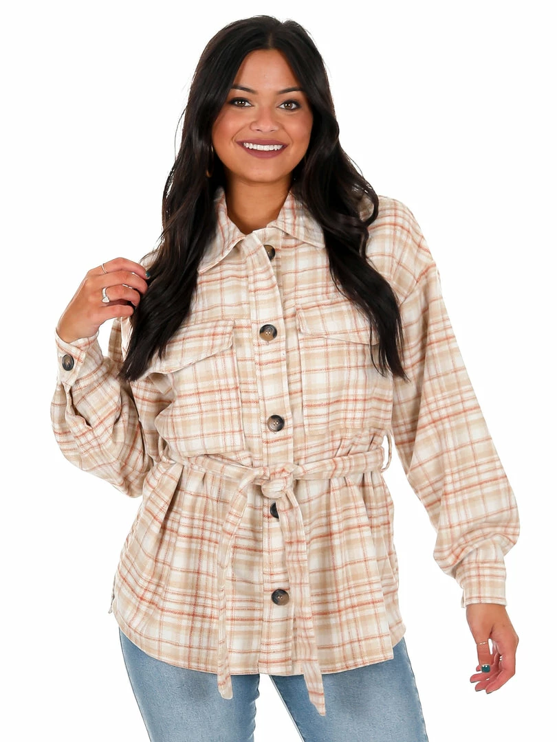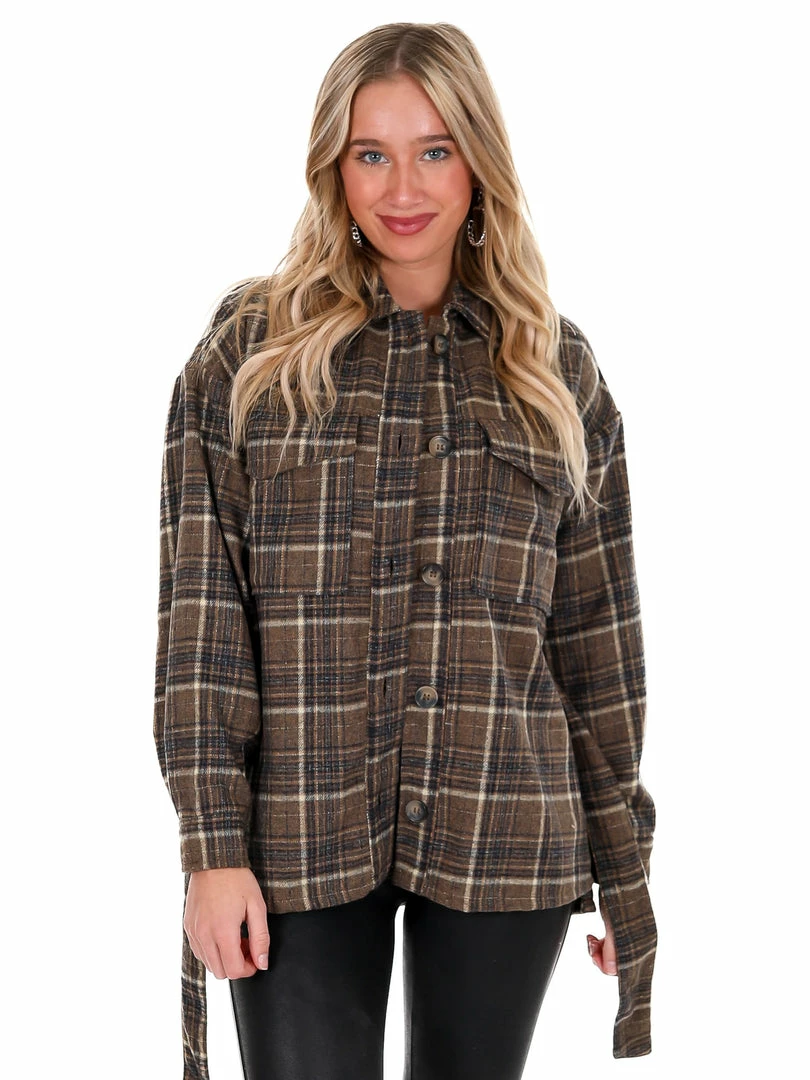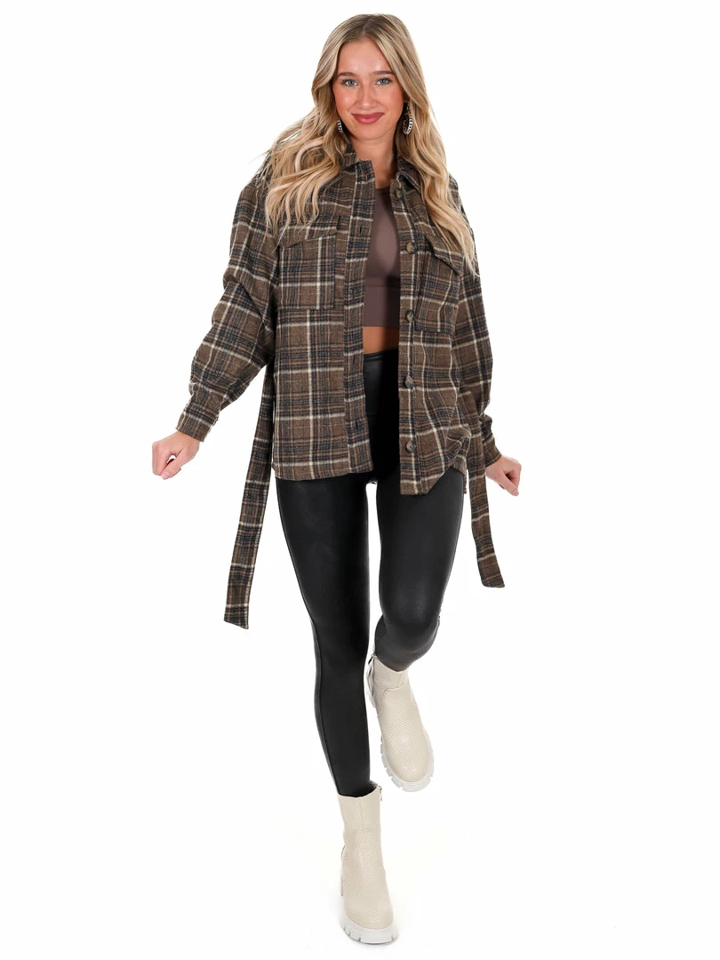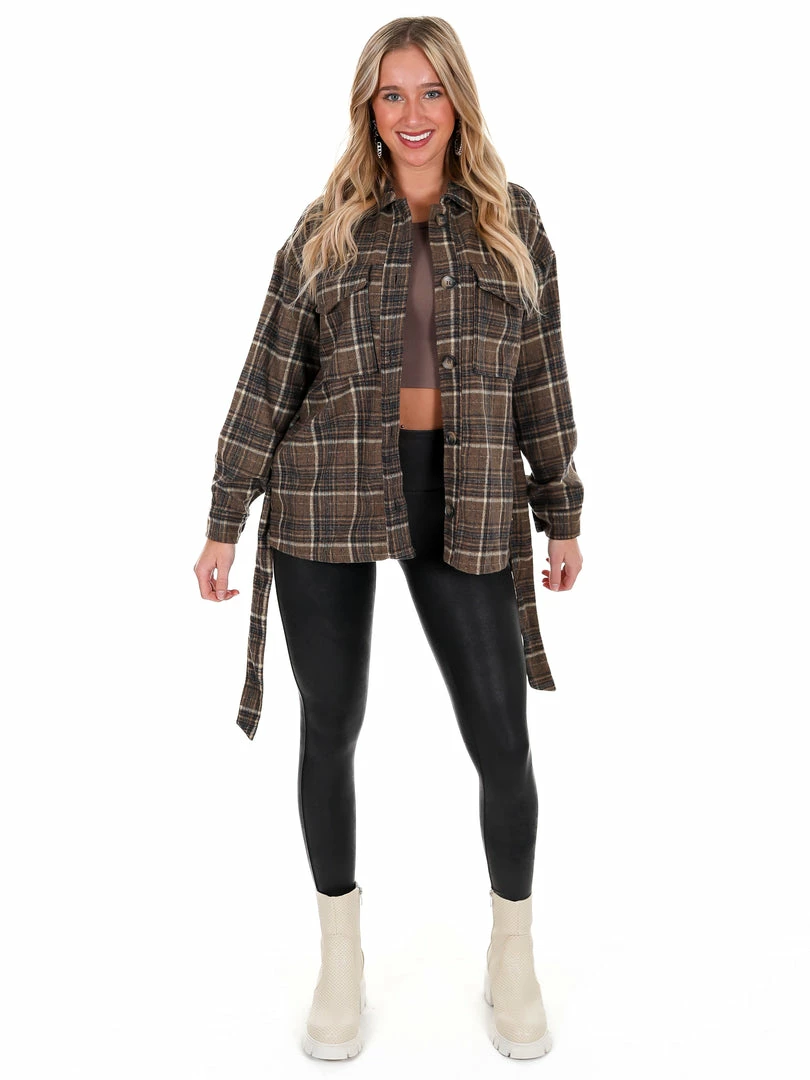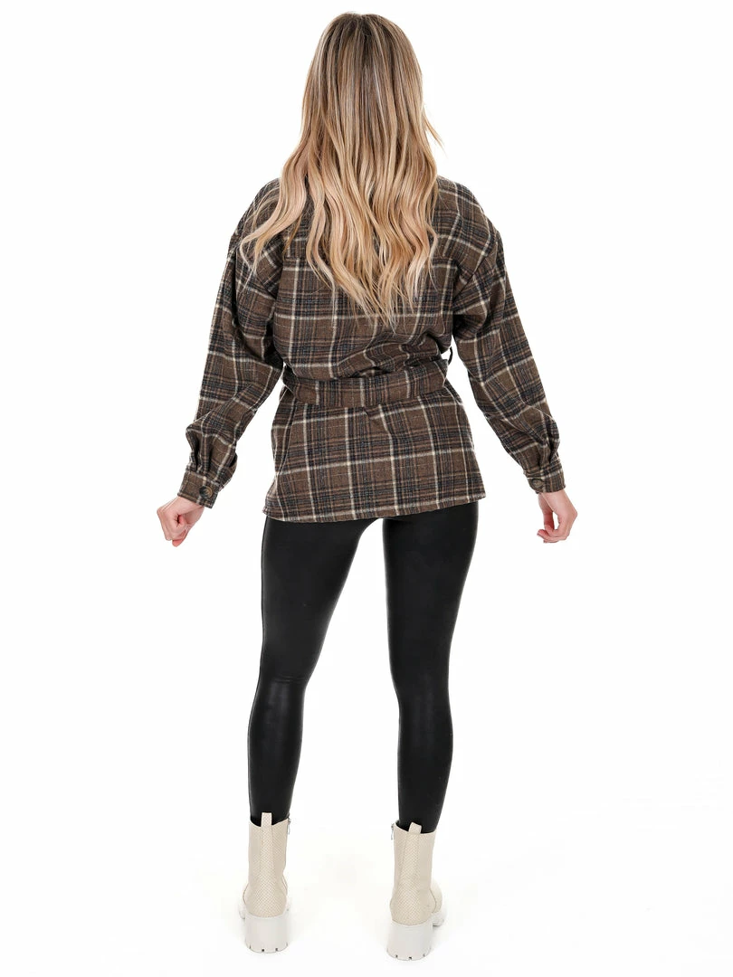 - Plaid belted shacket