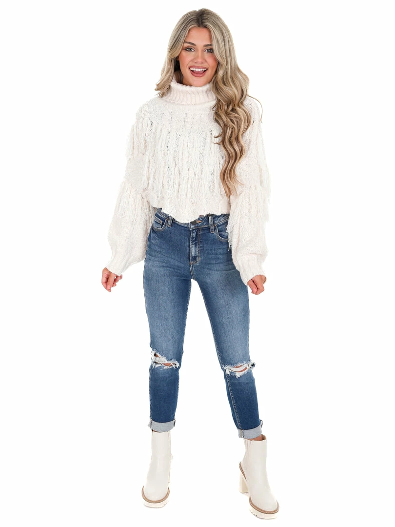 Buy 🔔 In The Beginning First Class Turtleneck Fringe Sweater ⌛