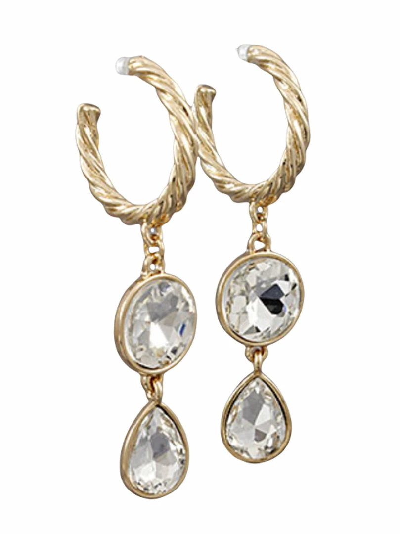 A textured hoop with a crystal circle and teardrop dangle, these earrings are so fab! Grab yours now!