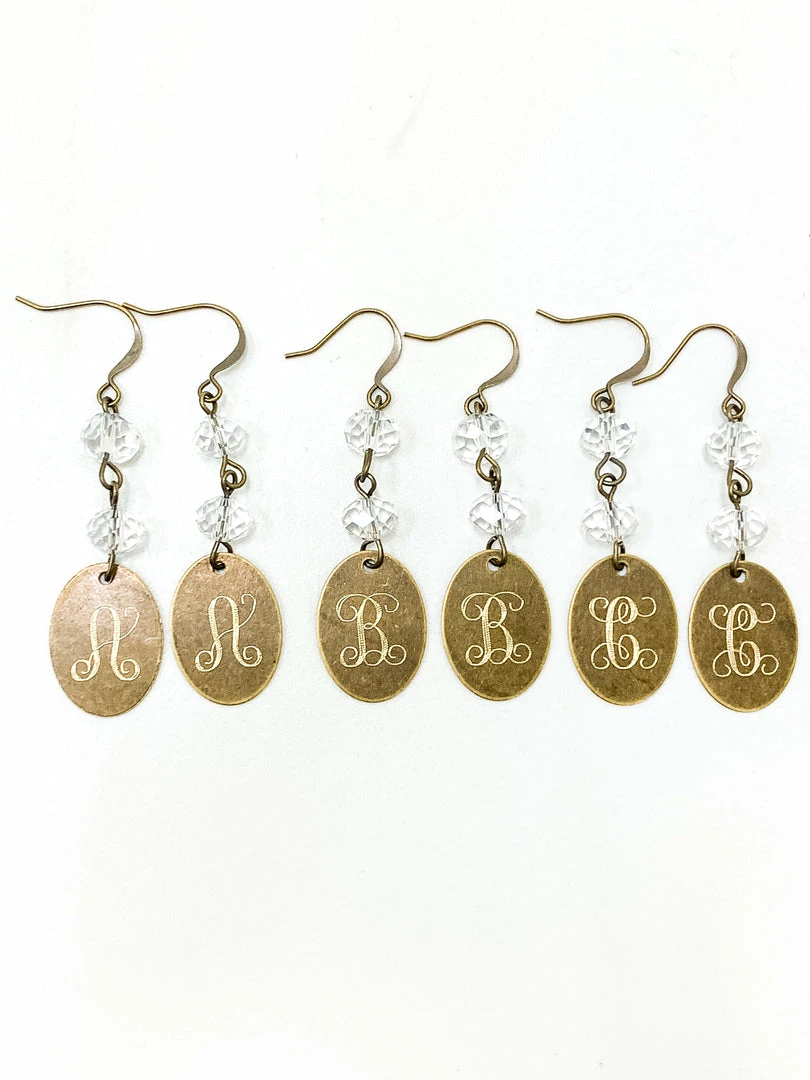 A more glam spin on the bronze initial earrings are these crystal drop initial earrings! They are sure to add a little sparkle and personalization to any look!