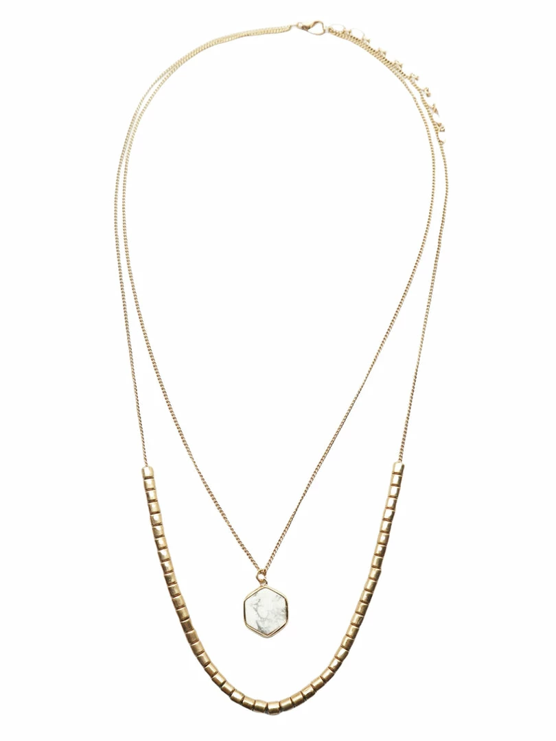 Featuring a layered design with a natural stone pendant and metal beads, this simple necklace is a classic! Don’t wait to grab yours!