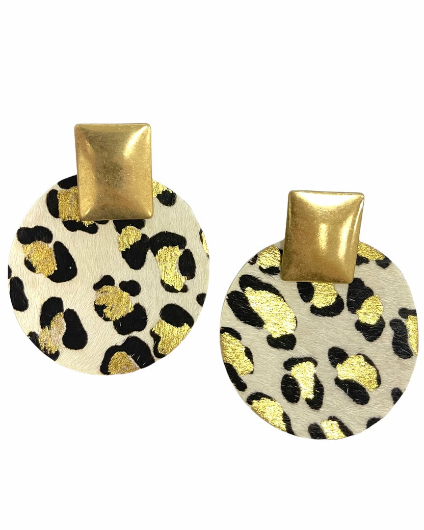 All the heart eyes for these earrings! Featuring a rectangle stud with a cowhide circle and metallic details in the leopard print, we are obsessed! Don’t wait to grab yours!
