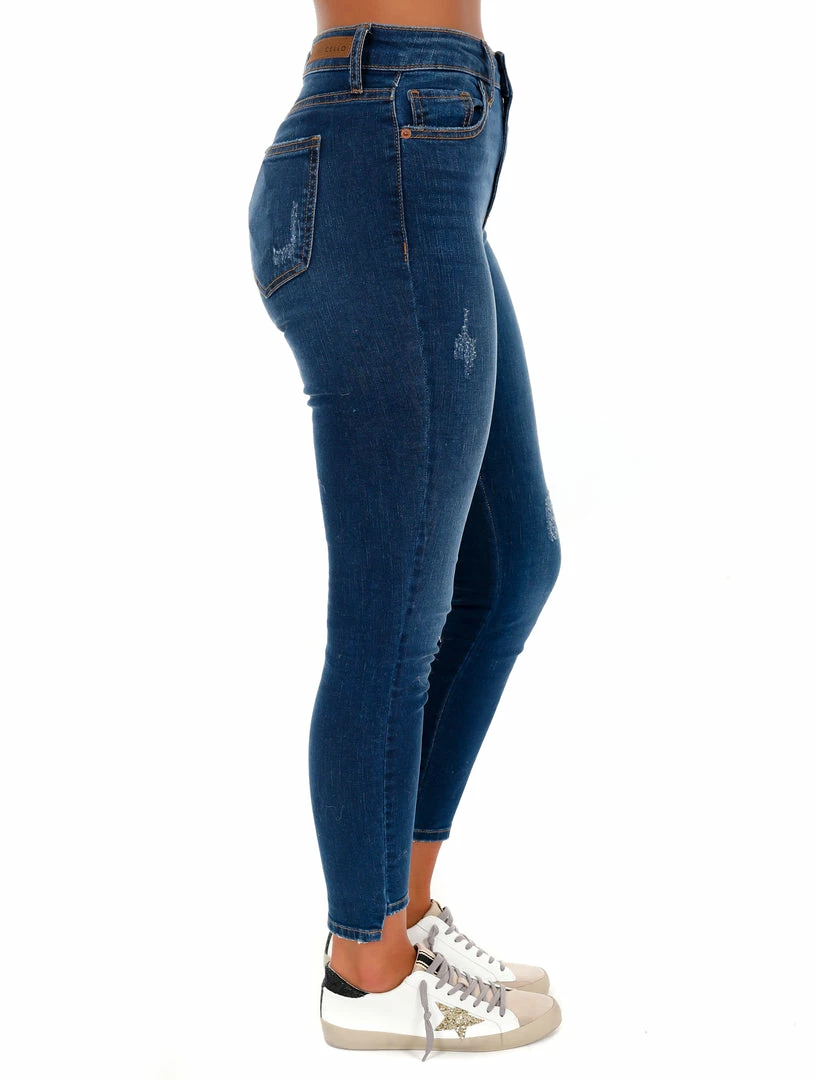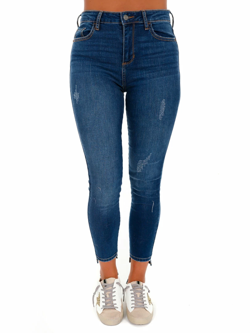 Run, don’t walk, to add these skinny jeans to your cart! Featuring a high rise fit with a few distressed details and a high low ankle hem, they are the best! Dress them up or down, they are sure to be your new go-to!