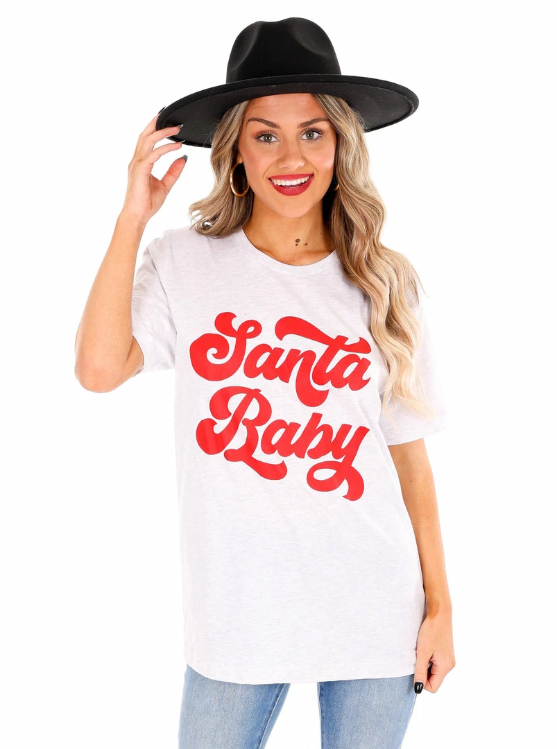 We are so in love with this adorable new graphic tee! Featuring a crew neckline and the cutest “Santa Baby” graphic, we can’t think of a cuter tee to rock this holiday season! Don’t wait to grab yours!