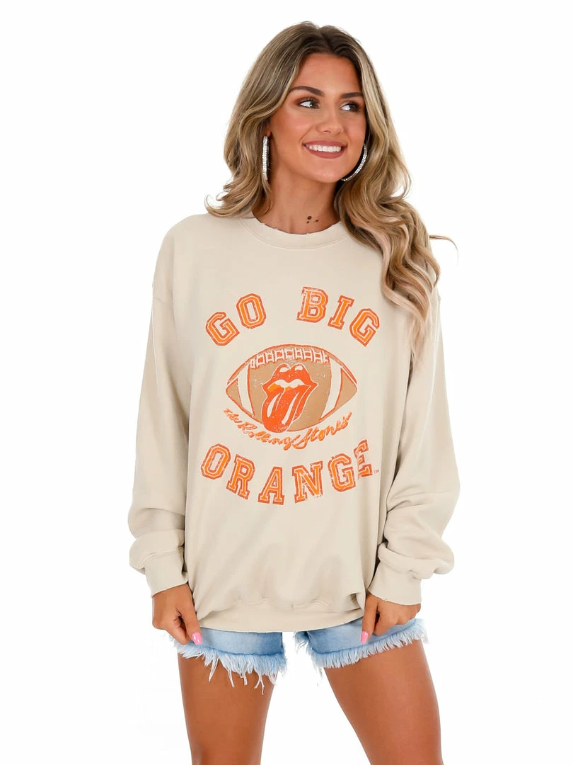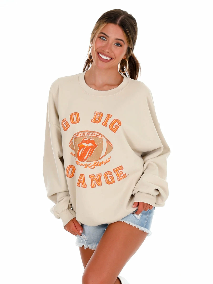 Outlet 👏 Livy Lu Graphic Tees Rolling Stones Go Big Orange Football Lick Thrifted Sweatshirt 😀
