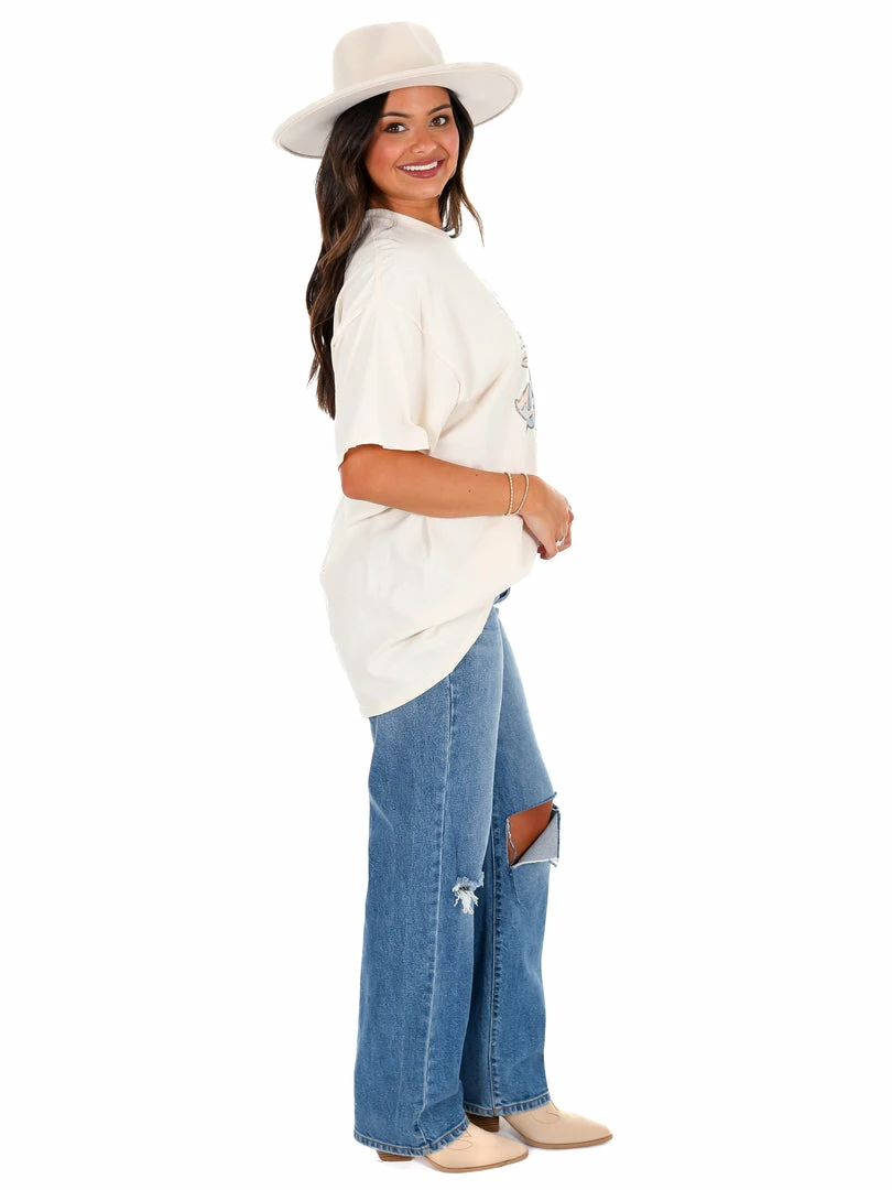 Our 100% Preshrunk Cotton thrifted tees are meaningfully distressed and officially licensed. Each piece is one of a kind, and colors/distressing may vary from shirt to shirt.ย Pairs well with vintage denim and your favorite kicks.