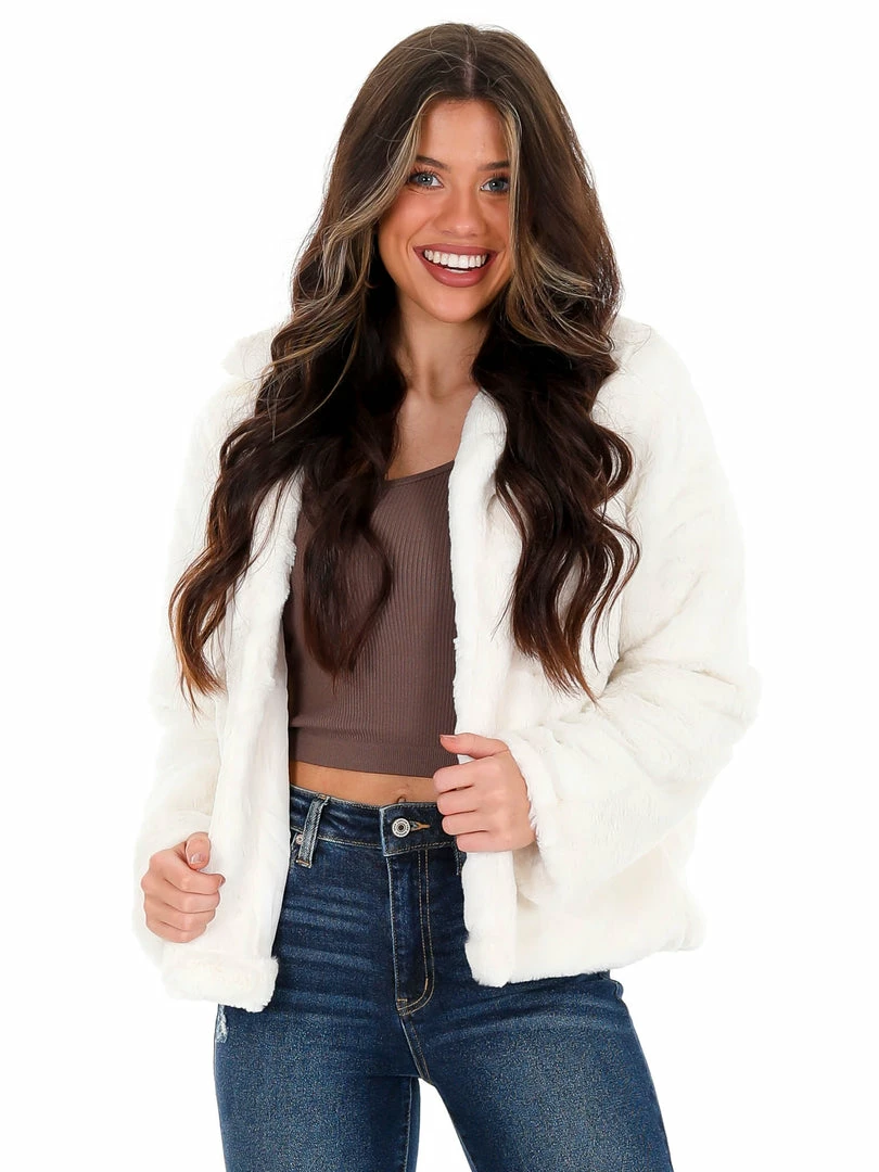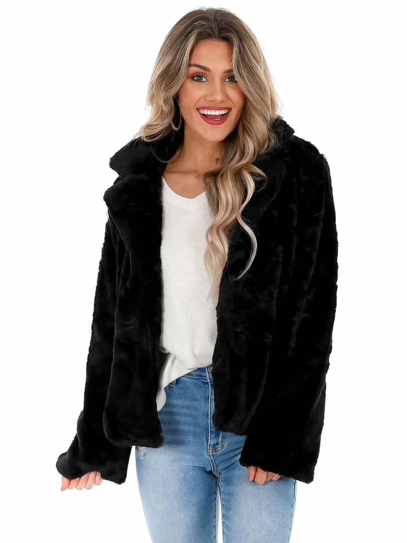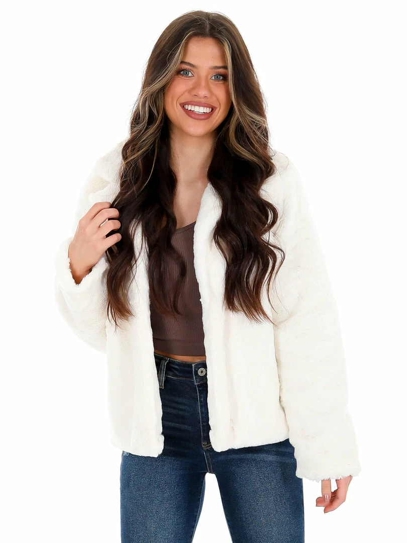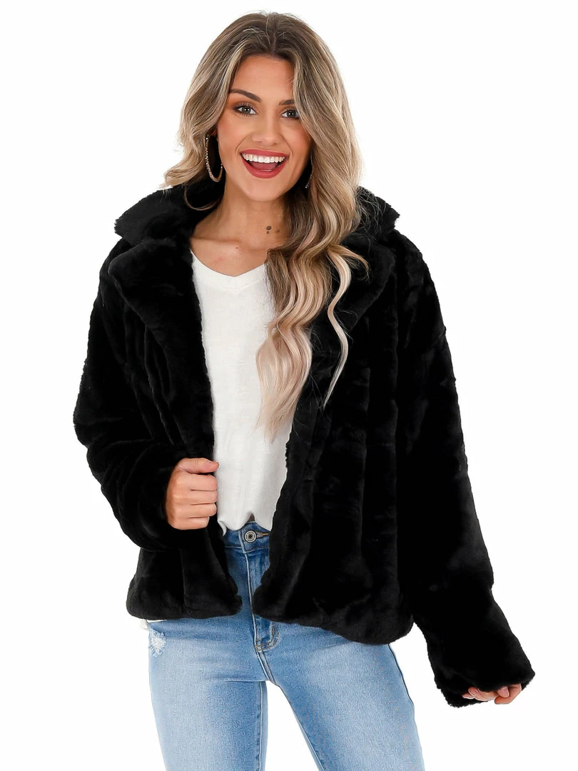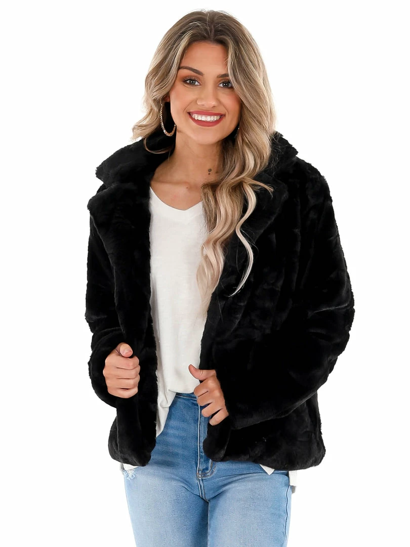 Fight the chill while looking chic this season in this beautiful Faux Fur Jacket! The comfiest fit with a simple style, this jacket can be worn with anything! Don’t wait to grab yours!
