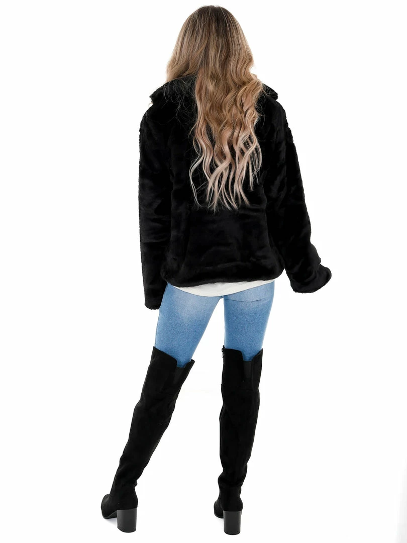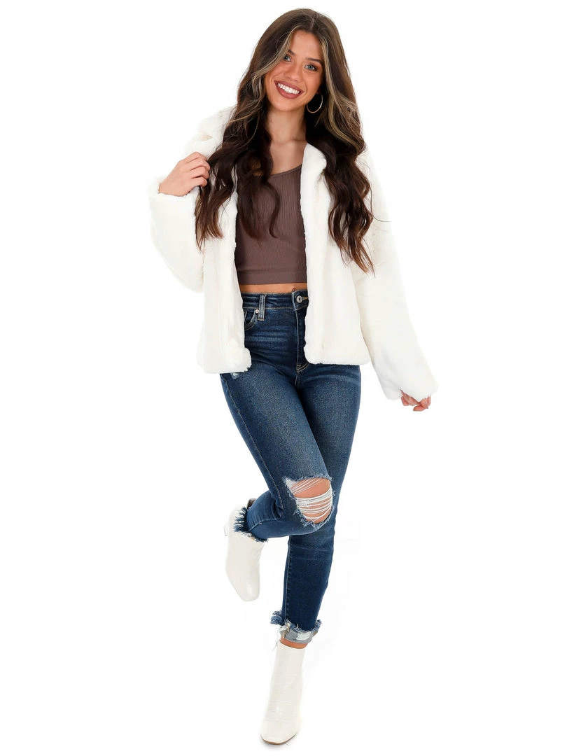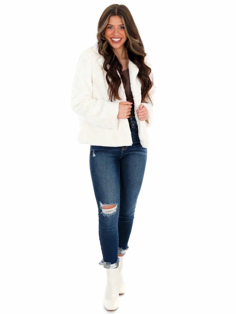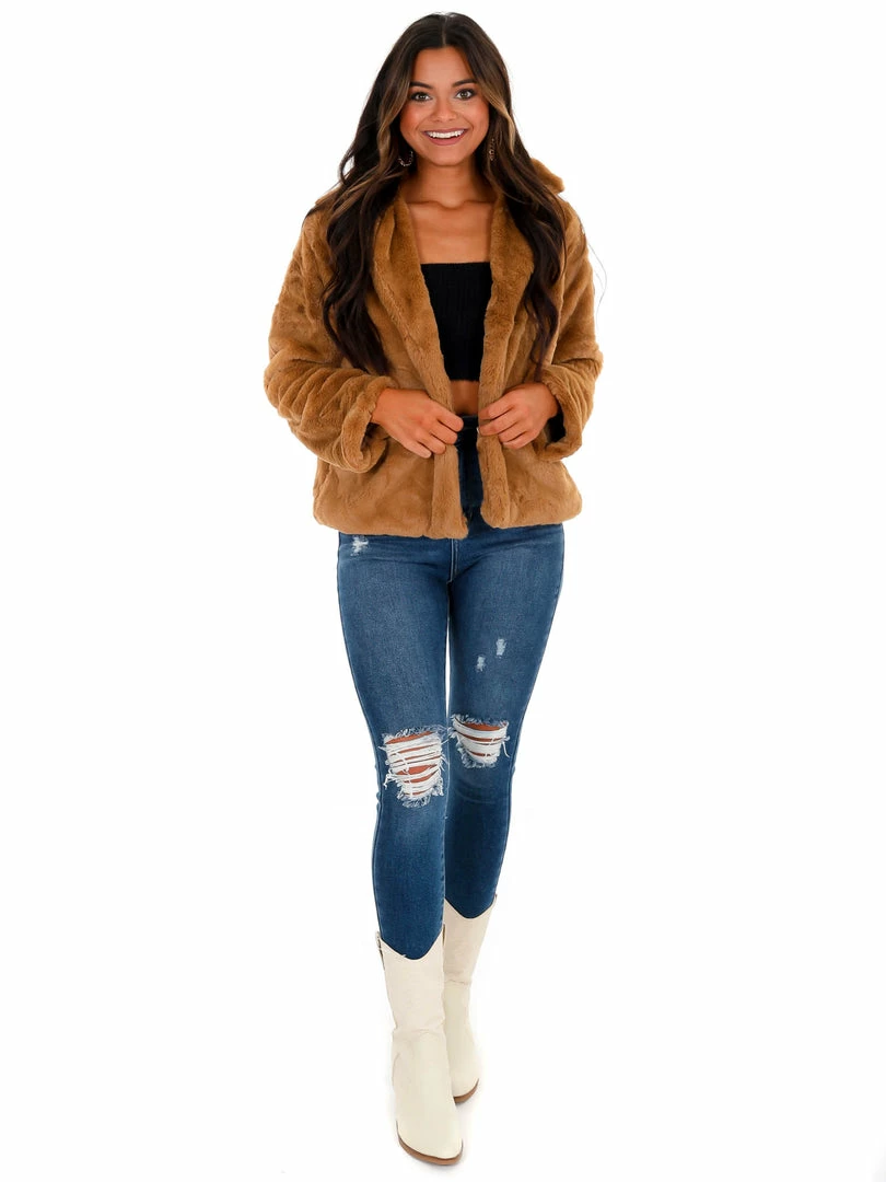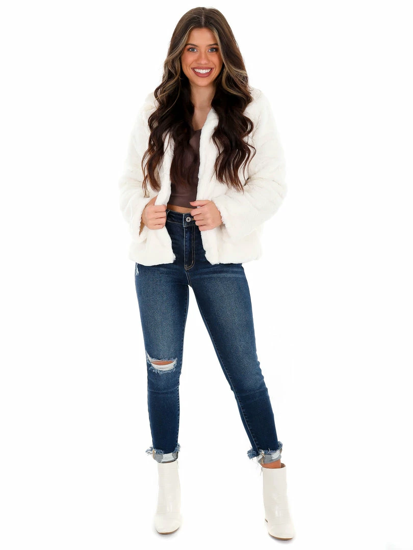 Fight the chill while looking chic this season in this beautiful Faux Fur Jacket! The comfiest fit with a simple style, this jacket can be worn with anything! Don’t wait to grab yours!