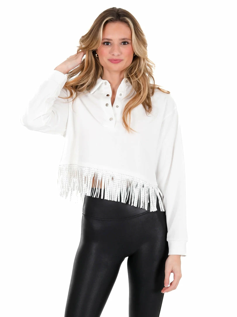 Best Pirce 🔔 Main Strip Can’t Help Myself Stud Fringe Crop Top Tops 👏