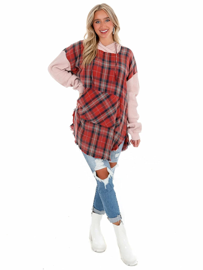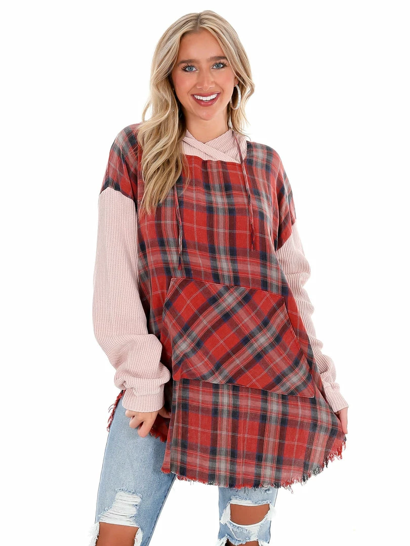 - Long plaid hoodie