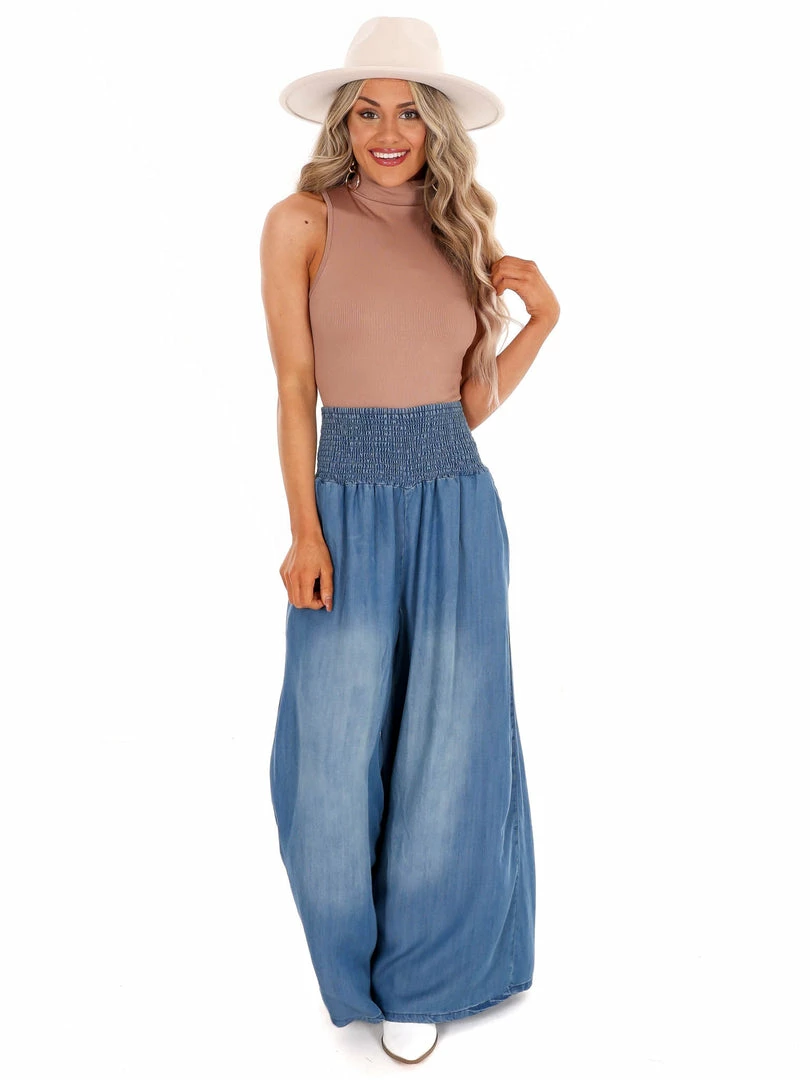 These adorable new pants are a staff favorite here at Josie’s! Featuring a smocked waistline, wide leg pant legs and a medium denim wash, they are comfortable, flattering and perfect for dressing up or down! Don’t wait to grab yours!