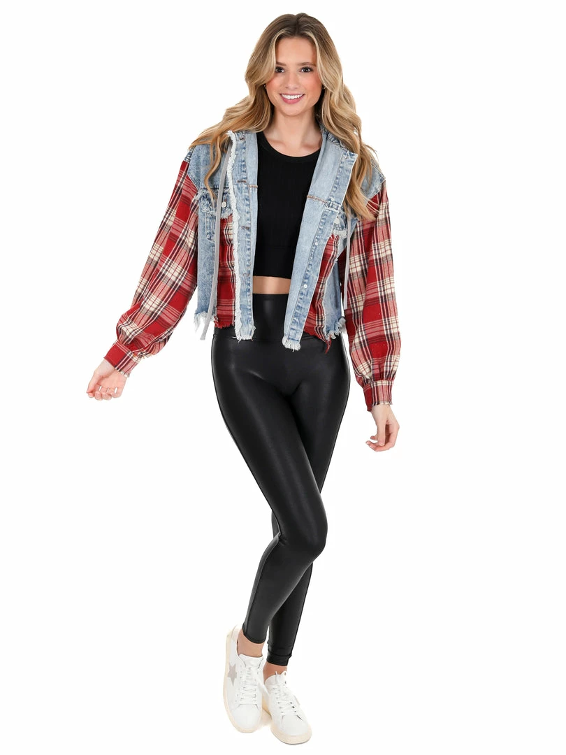 Brand new ๐ Oli & Hali Tops What You Are Red Plaid Denim Jacket โ๏ธ