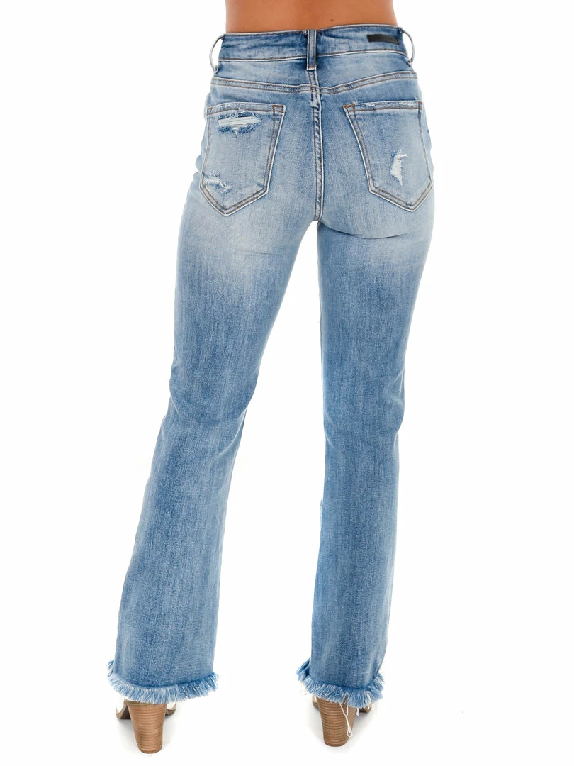 Best Pirce 💯 Risen Bottoms Owe You Mid Rise Light Distressed Ankle Flare ✨