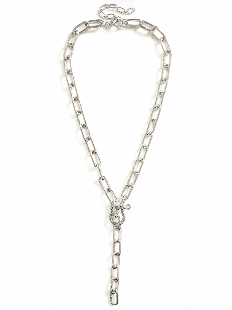 All the heart eyes for this necklace! A thick chainlink design with a cool dangle detail, we could not love it more! Whether you prefer gold or silver, this necklace is one you must have!