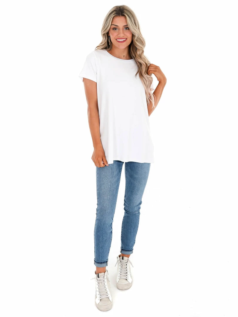 The magic is in the fabric. We designed this go-to tee with buttery-smooth fabric, so it moves effortlessly with you. Even better, thereβs just enough length to cover your front and butt, making it the ideal match for leggings.