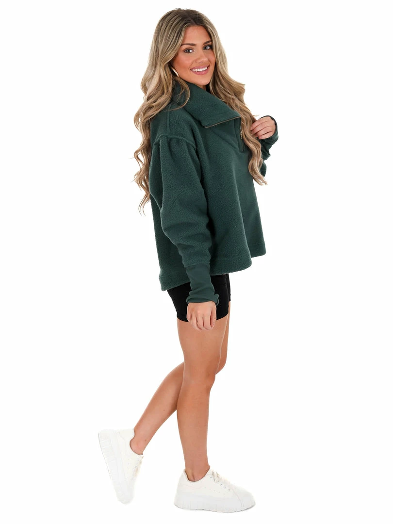 Forever cozy in a faux sherpa-lined fleece, this pullover will be your go-to all season long.